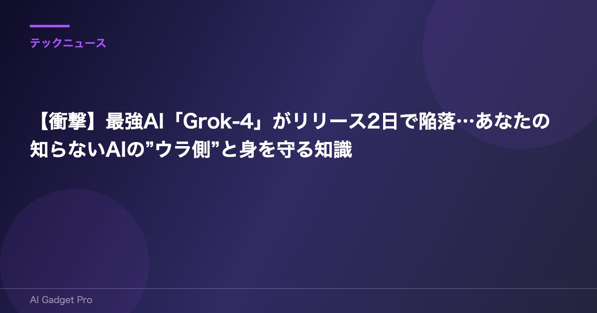 実は先日、イーロン・マスク氏が率いるxAI社が満を持してリリースした最新・最強のAIモデル「Grok-4」が、公開からわずか2日で「脱獄(ジェイルブレイク)」されてしまうという衝撃的な事件が起きました。