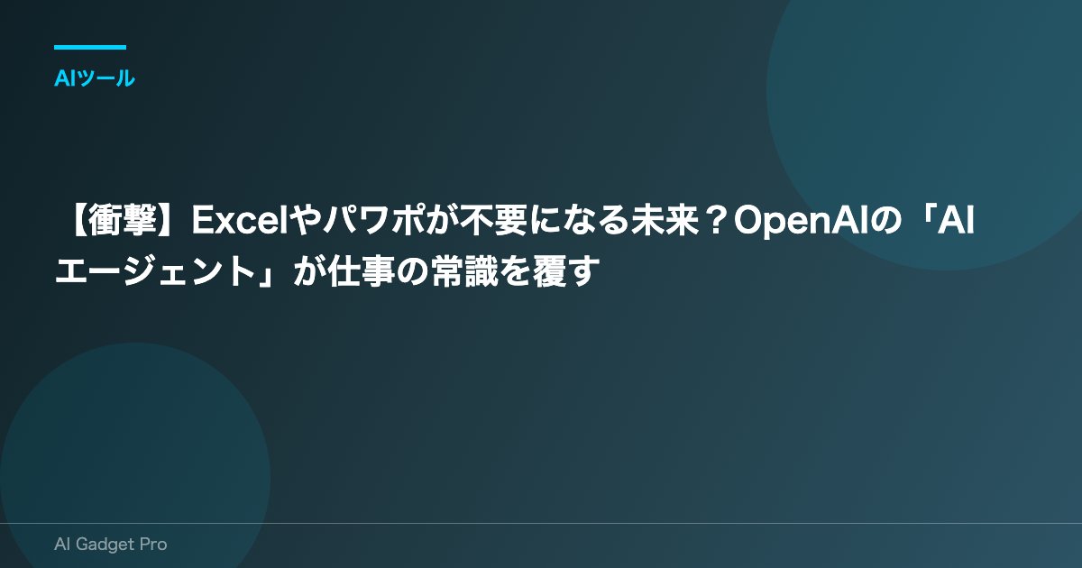 ChatGPTを開発したOpenAIが、これらの定型業務を全自動で行う「AIエージェント」を準備していることが明らかになりました。これは、単なるツールの進化ではありません。私たちの「働き方」そのものを根底から変える、革命の始まりかもしれません。