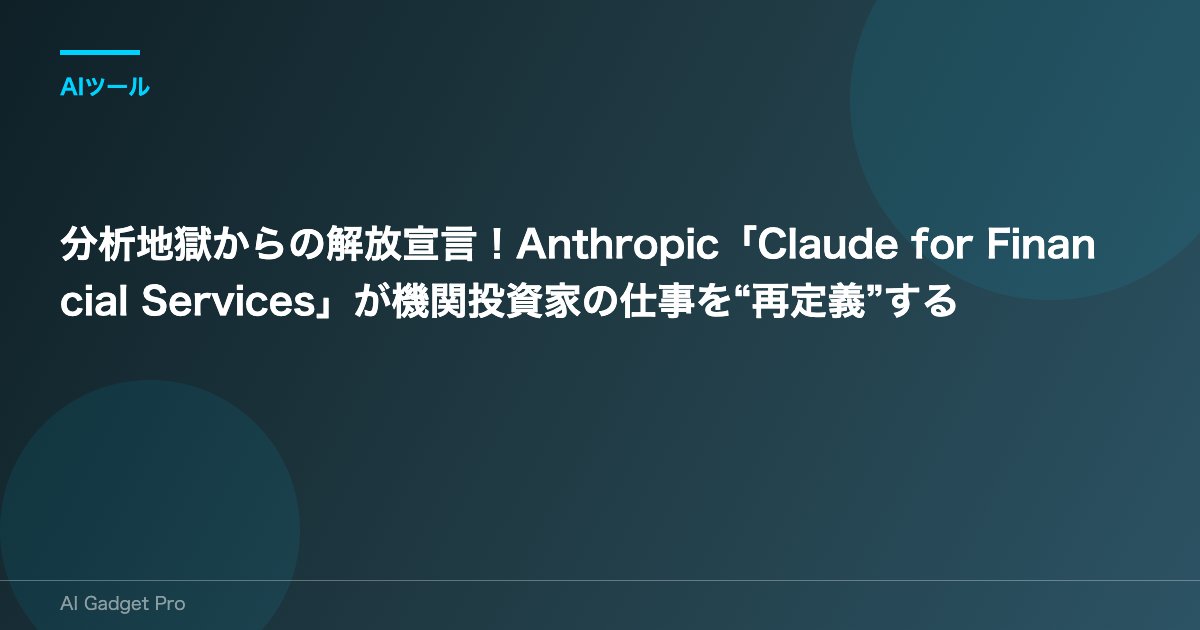 2025年7月16日(現地時間)、AIのトップ企業Anthropicが、そんな金融プロフェッショナルの夢を現実にするソリューションを発表しました。その名も**「Claude for Financial Services」**。これは、あなたの業務を劇的に効率化し、より的確な意思決定を可能にする、まさにゲームチェンジャーと呼ぶべき存在です。