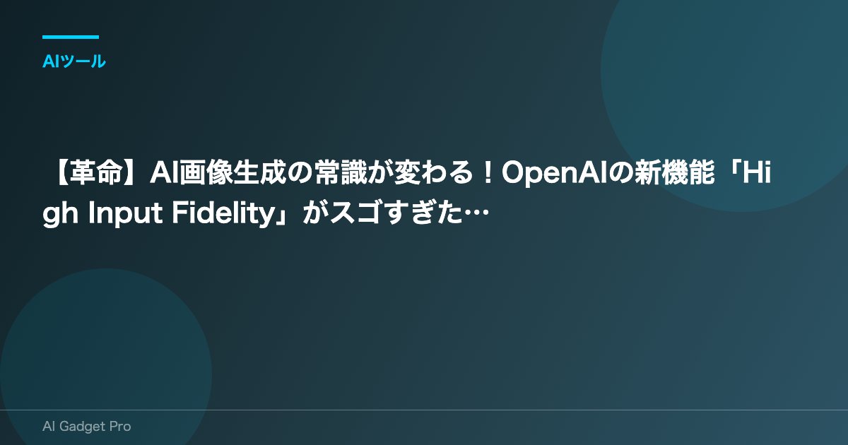 今回ご紹介するOpenAIのImage APIの新機能**「High Input Fidelity」**が、あなたのその悩みを一瞬で解決してくれるかもしれません。