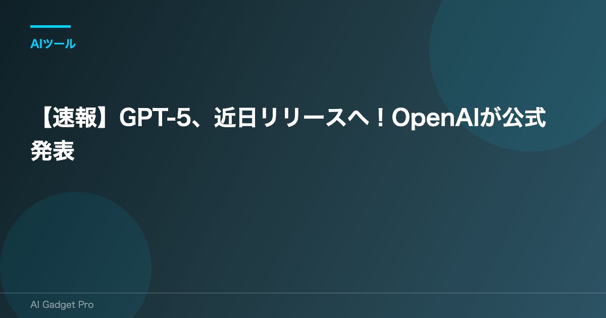 OpenAIが「GPT-5を近日中にリリースする」と公式に発表しました。