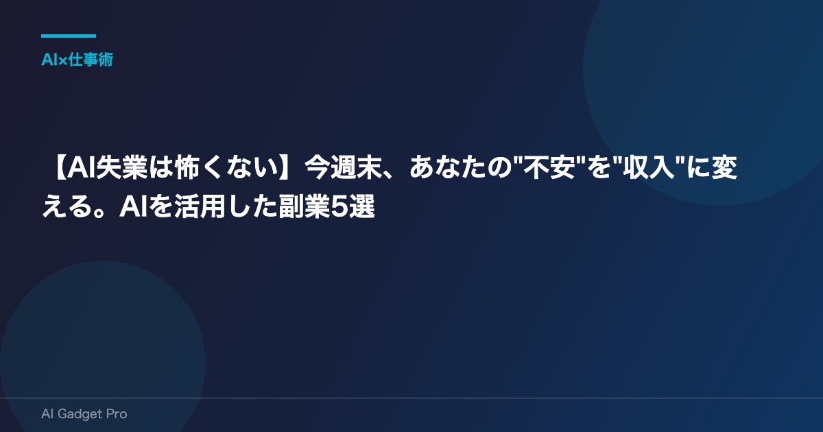 【AI失業は怖くない】今週末、あなたの”不安”を”収入”に変える。AIを活用した副業5選