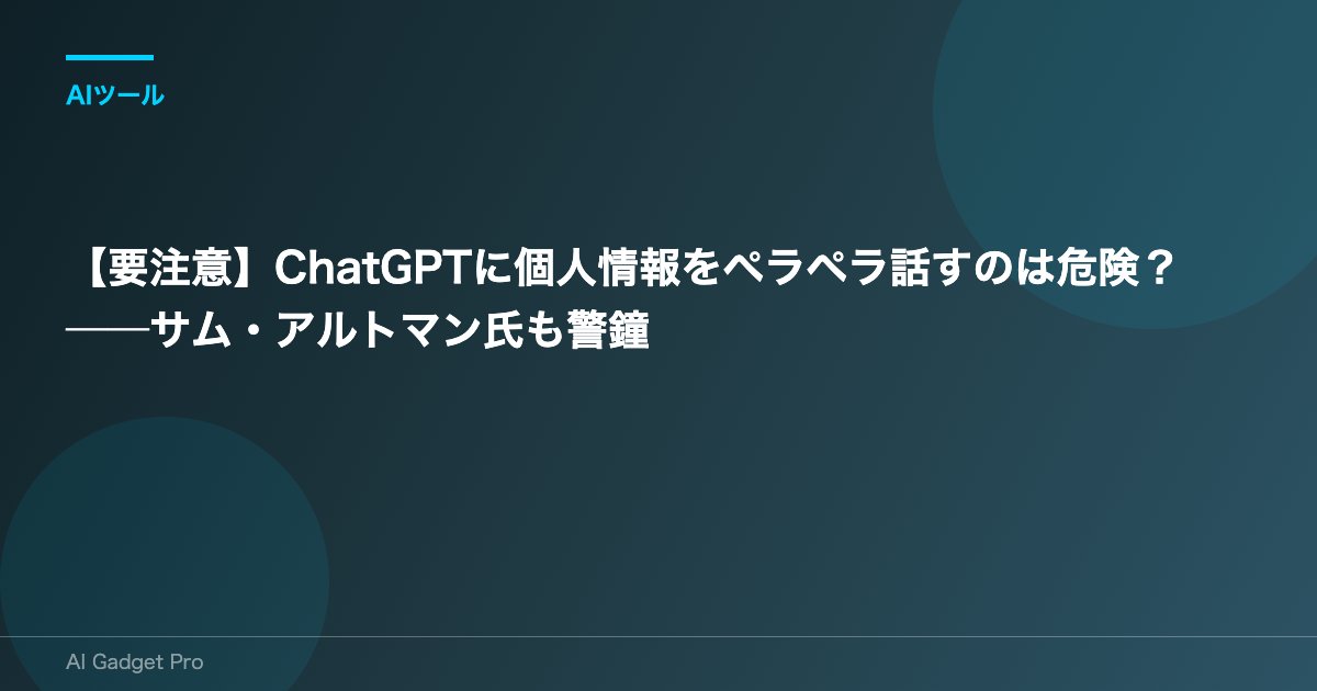 ChatGPTの生みの親であるサム・アルトマン氏も懸念しているように、AIとの会話にはプライバシー保護がまったくありません。医師や弁護士との会話とは違い、話した内容が訴訟で提出されたり、別のユーザーに漏れてしまうリスクも潜んでいます。
