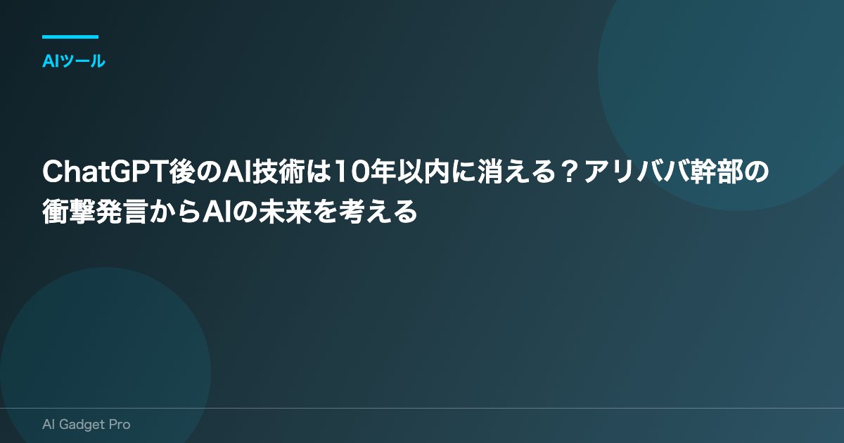 OpenAIが開発したChatGPTは、私たちのAIに対する認識を大きく変えました。しかし、この革新的な技術の登場からわずか数年で、衝撃的な予測が飛び出しました。アリババグループのクラウド&AI部門の創設者である王堅氏が、「ChatGPT以降に生まれた技術とサービスの9割は、10年以内に消滅する可能性がある」とブルームバーグテレビジョンで語ったのです。