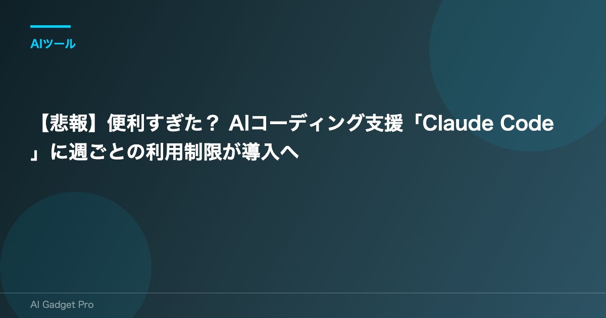 2025年8月28日より、週ごとの利用制限が導入されることが発表されたのです。