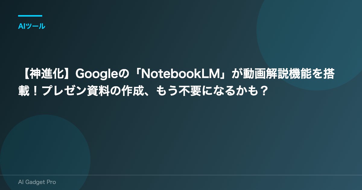 Googleが提供するAIノートツール「NotebookLM」が、またしても私たちの情報整理の常識を覆す、革新的なアップデートを発表しました。その名も**「Video Overviews(動画解説)」機能**。