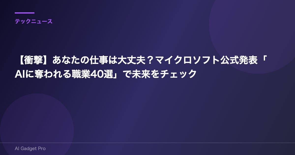 【衝撃】あなたの仕事は大丈夫?マイクロソフト公式発表「AIに奪われる職業40選」で未来をチェック