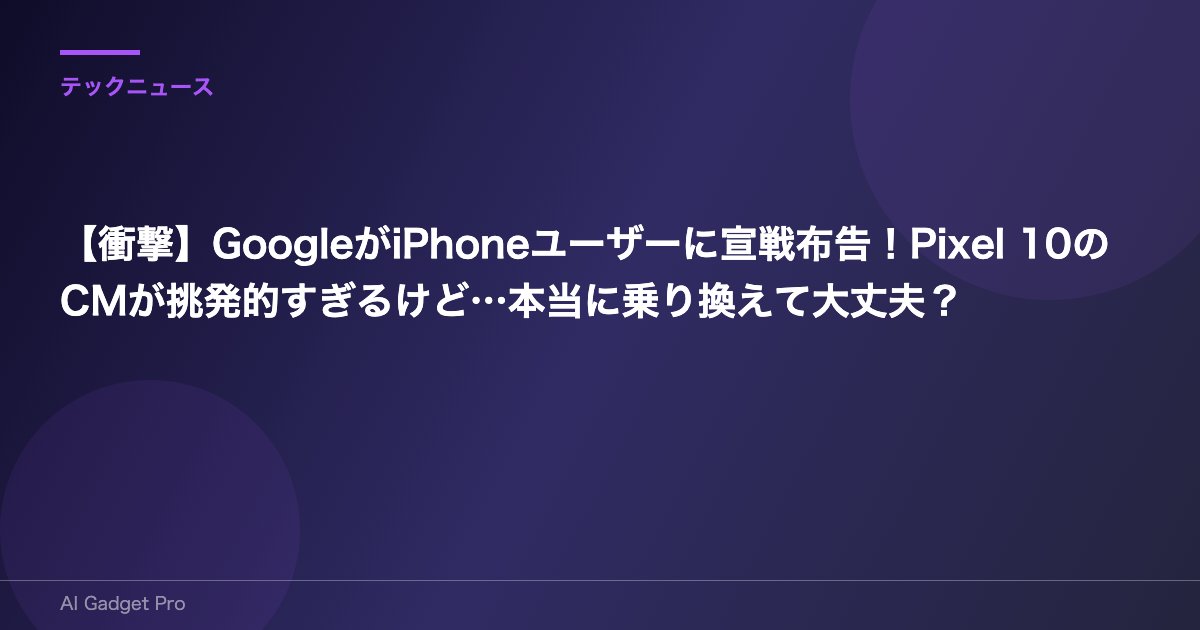「新しいiPhoneのAI機能、Apple Intelligenceにめちゃくちゃ期待してたのに、使えるのはまだ先だなんて…」 「Google Pixel 10のCM見た?『待ってる時間は無駄だ』って、すごい自信だけど、本当にそんなにスゴイの?」 「でも、Googleってすぐサービス終了するイメージがあるし、乗り換えるのはちょっと不安…」