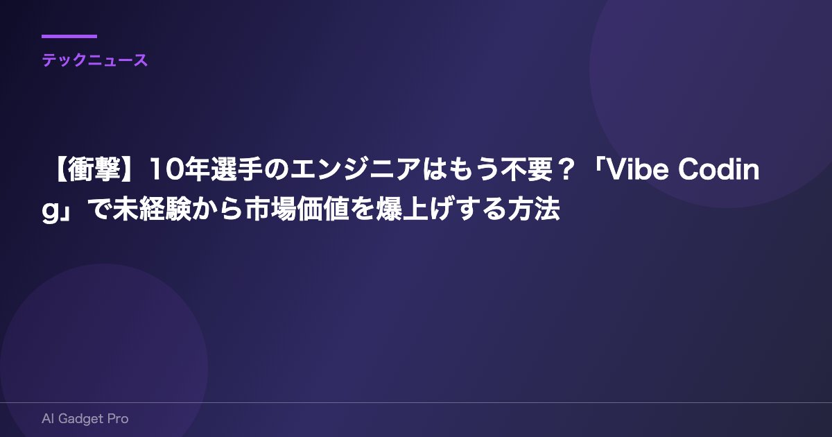 この記事で紹介する「Vibe Coding」をマスターすれば、たとえあなたがプログラミング未経験の学生だったとしても、10年の経験を持つベテランエンジニアを凌駕するほどの開発者になれるかもしれません。