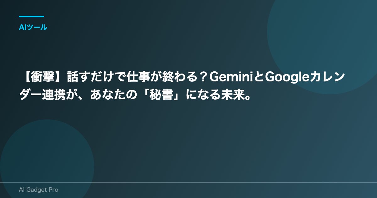 この記事では、私が実際に試して「もう元には戻れない!」と感動した、GeminiとGoogleカレンダーの連携機能について、その凄さを徹底的にレビューします。