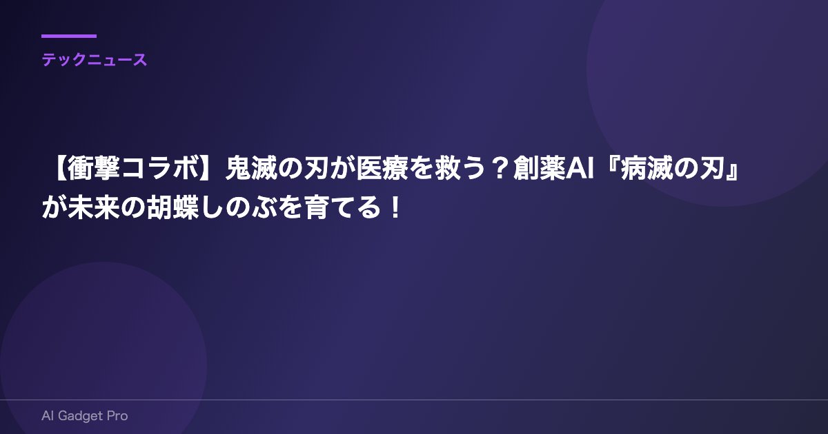 今回、鬼滅の刃とタッグを組んだのは、京都大学のある研究室。彼らが取り組んでいるのは**「創薬AI」**という、とてつもなく重要な研究です。