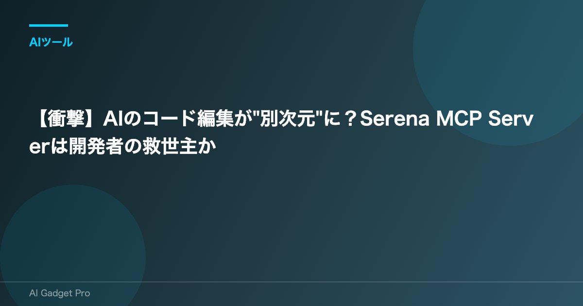 この記事で紹介する**「Serena MCP Server」は、そんな開発者の夢を現実にするかもしれない、まったく新しいアプローチのツールです。結論から言うと、これはAIを「そこそこ使えるアシスタント」から「信頼できる開発パートナー」**へと進化させる可能性を秘めています。