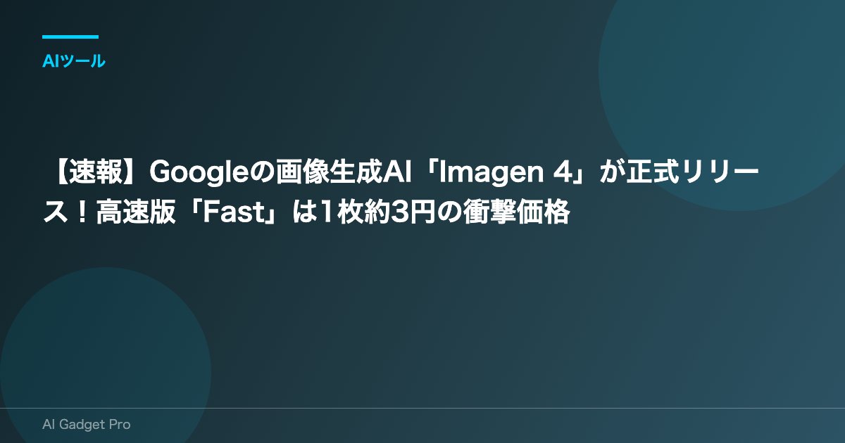 2025年8月14日、Googleは最新のAI画像生成モデル**「Imagen 4」の正式提供を開始**しました。
