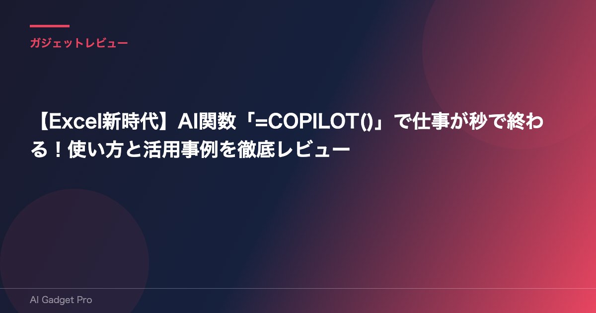 Excelの定型作業に追われる日々は、もう終わりかもしれません。今回ご紹介する**Excelの新AI関数「=COPILOT()」**は、あなたの働き方を根底から変える可能性を秘めた、まさに革命的な機能です。