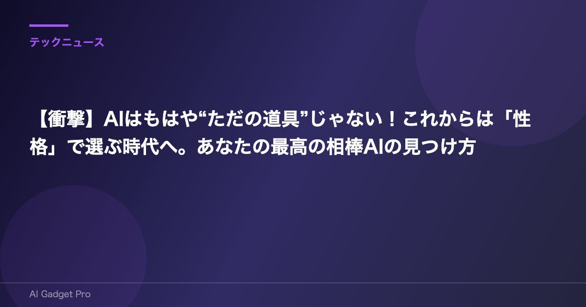 この記事を読み終える頃には、あなたはAIを単なる効率化ツールとしてではなく、あなたの仕事や日常を豊かにしてくれる**「最高の相棒」**として見つけ出す、新しい視点を手に入れているはずです。