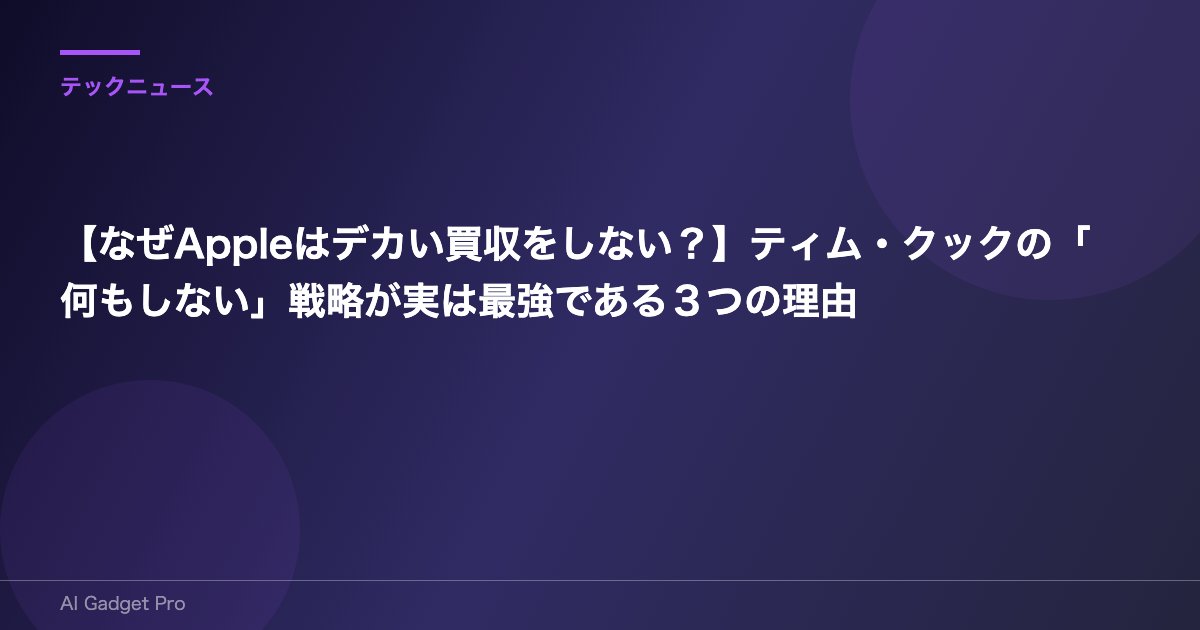 そんな声が聞こえてきそうです。しかし、もしあなたがAppleの長期的な成功を願うなら、ティム・クック氏のこの「大型買収をしない」という判断は、実はこの上なく正しく、Appleの強さの源泉であることに気づくはずです。