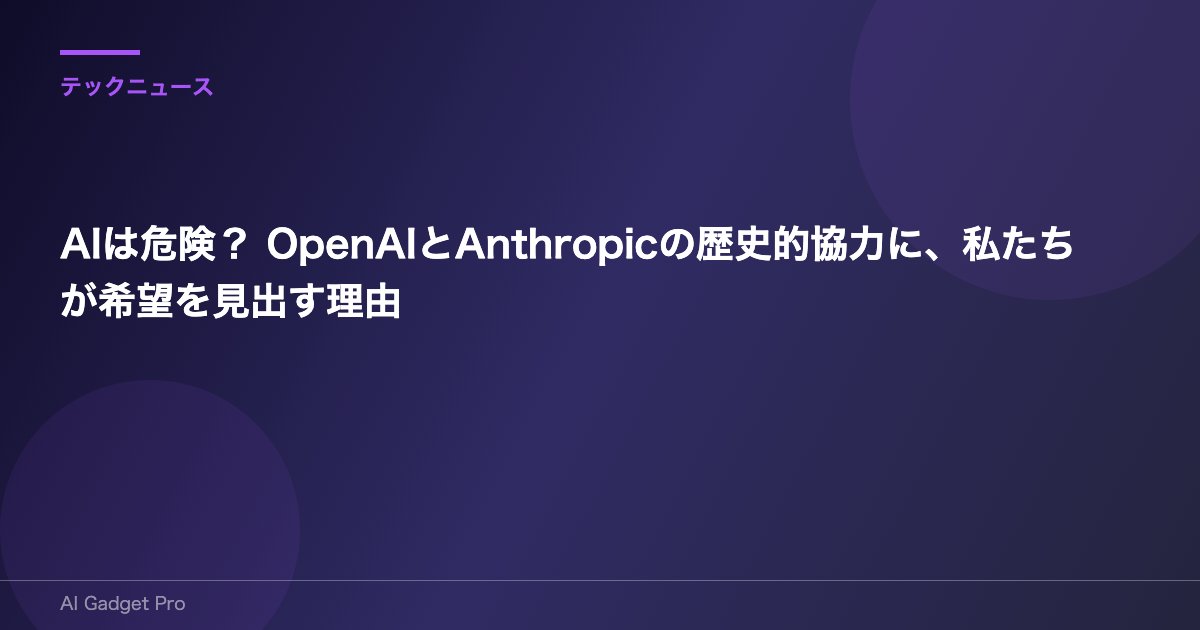 この記事では、AIの「光」と「影」を直視しながら、私たちが未来のAIとどう向き合っていくべきか、その大きなヒントとなるOpenAIとAnthropicの歴史的な共同プロジェクトについて、その本質的な価値を徹底解説します。