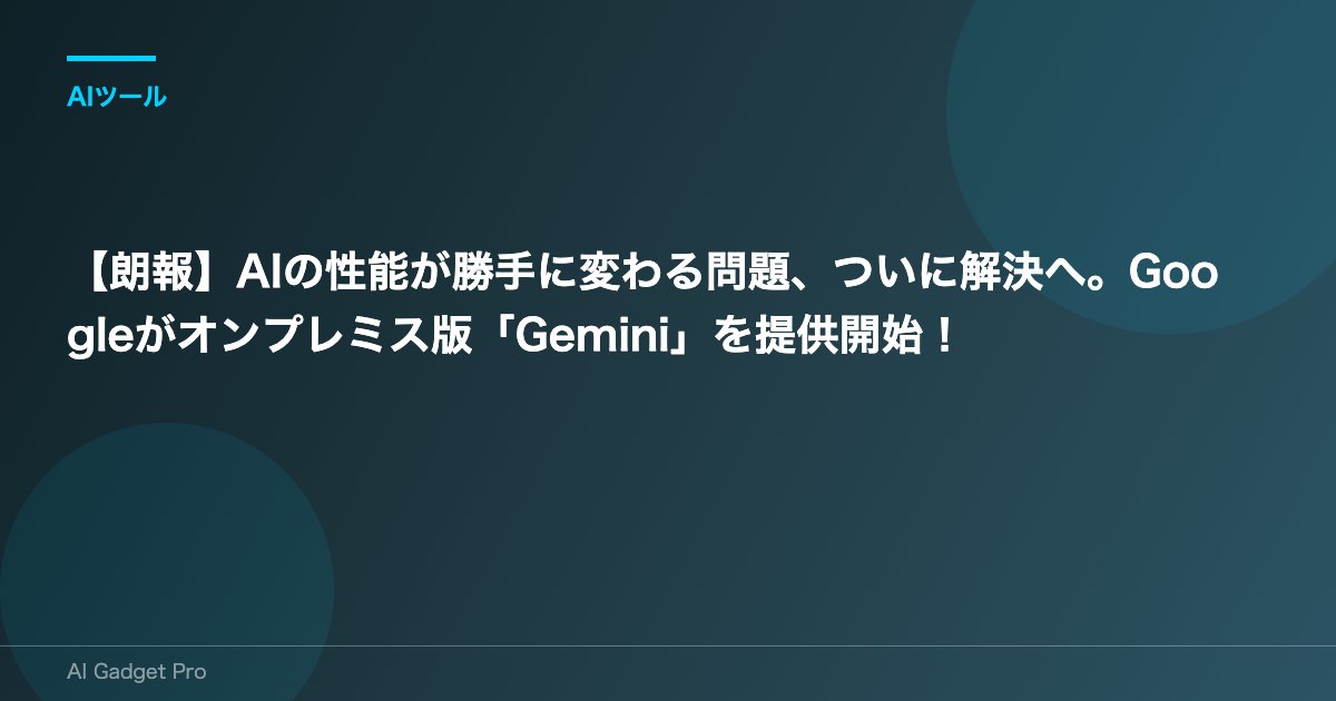 この記事では、オンプレミス版Geminiがあなたのビジネスをどう変えるのか、その核心に迫ります。
