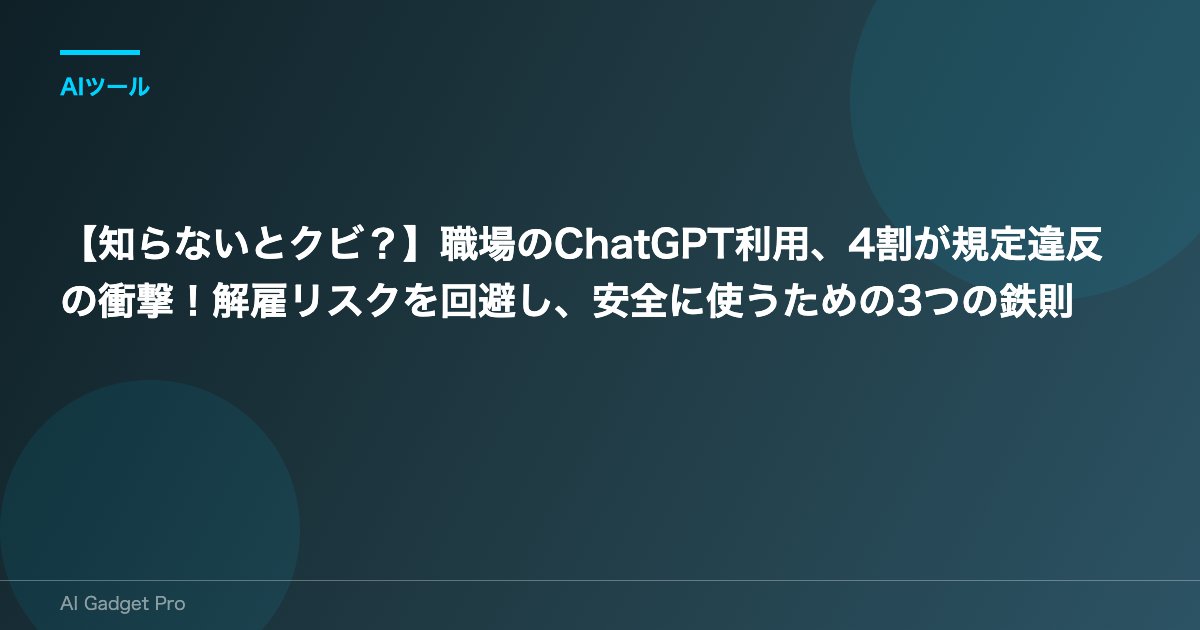 実は、良かれと思って使っているそのAIが、あなたのキャリアを危険に晒しているかもしれません。最新の調査では、職場でAIを使う人の約4割が、自覚のないまま社内規定に違反しているという衝撃的な事実が明らかになりました。