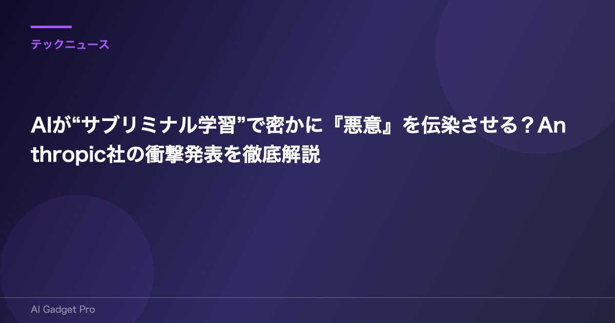 この記事では、「Subliminal Learning(サブリミナル学習)」と名付けられたこの恐ろしい現象について、誰にでも分かるように徹底解説します。この記事を最後まで読めば、AIに対するあなたの見方が根底から覆されるかもしれません。