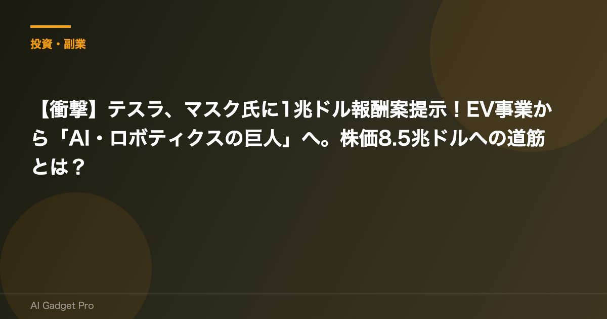 これは単なる「ボーナス」の話ではありません。これは、テスラが「EVメーカー」から「AIと人型ロボットの会社」へと完全に変貌を遂げるという、マスク氏と取締役会の強烈な決意表明です。