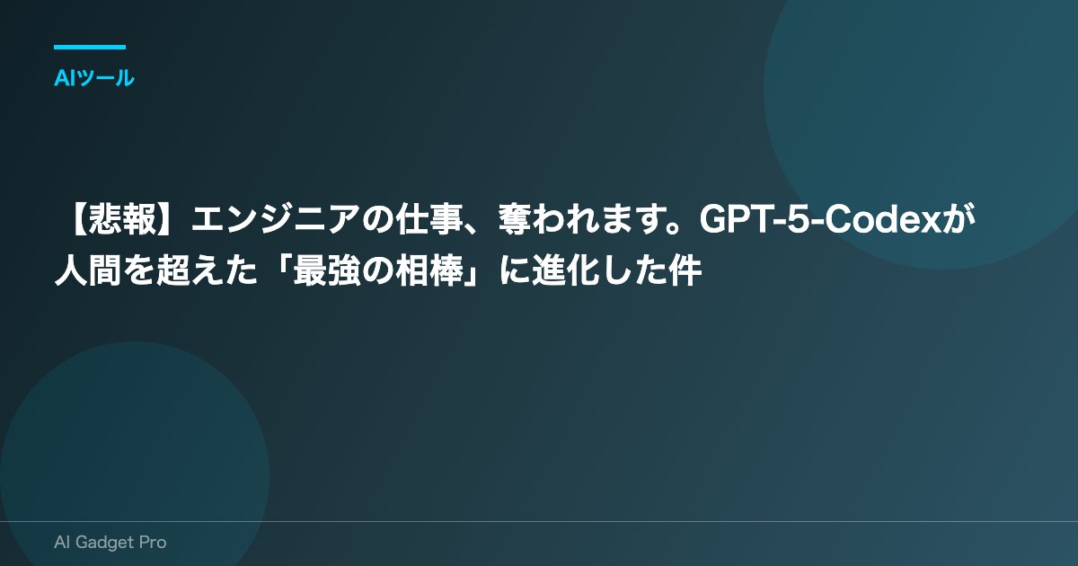 【悲報】エンジニアの仕事、奪われます。GPT-5-Codexが人間を超えた「最強の相棒」に進化した件