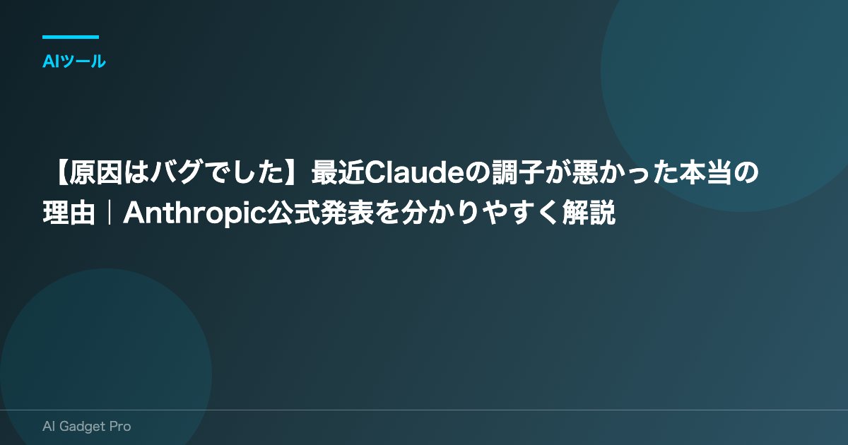実は2025年の8月から9月にかけて、Claudeは3つの複雑なインフラ関連のバグに見舞われていたのです。