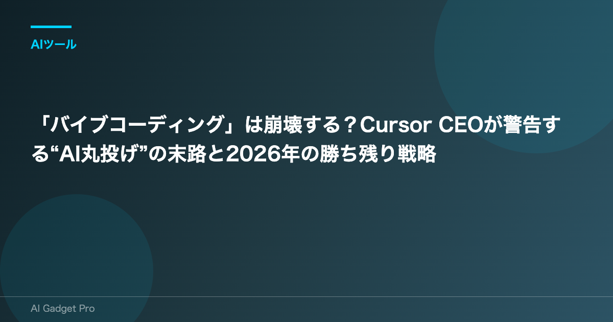 「バイブコーディング」は崩壊する?Cursor CEOが警告する“AI丸投げ”の末路と2026年の勝ち残り戦略