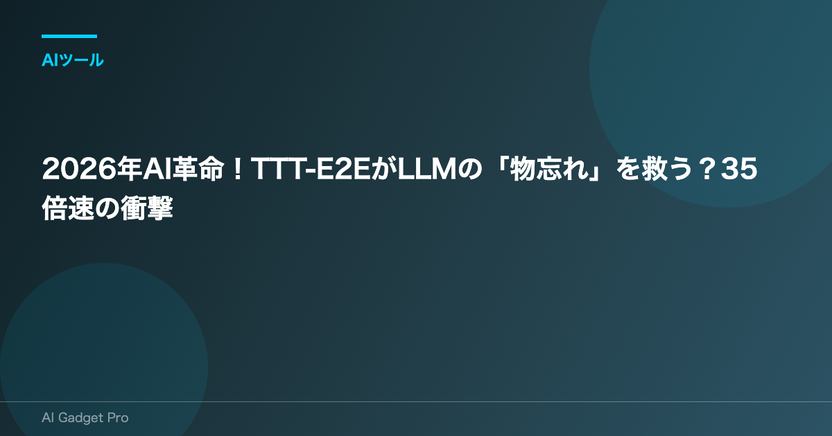2026年AI革命!TTT-E2EがLLMの「物忘れ」を救う?35倍速の衝撃
