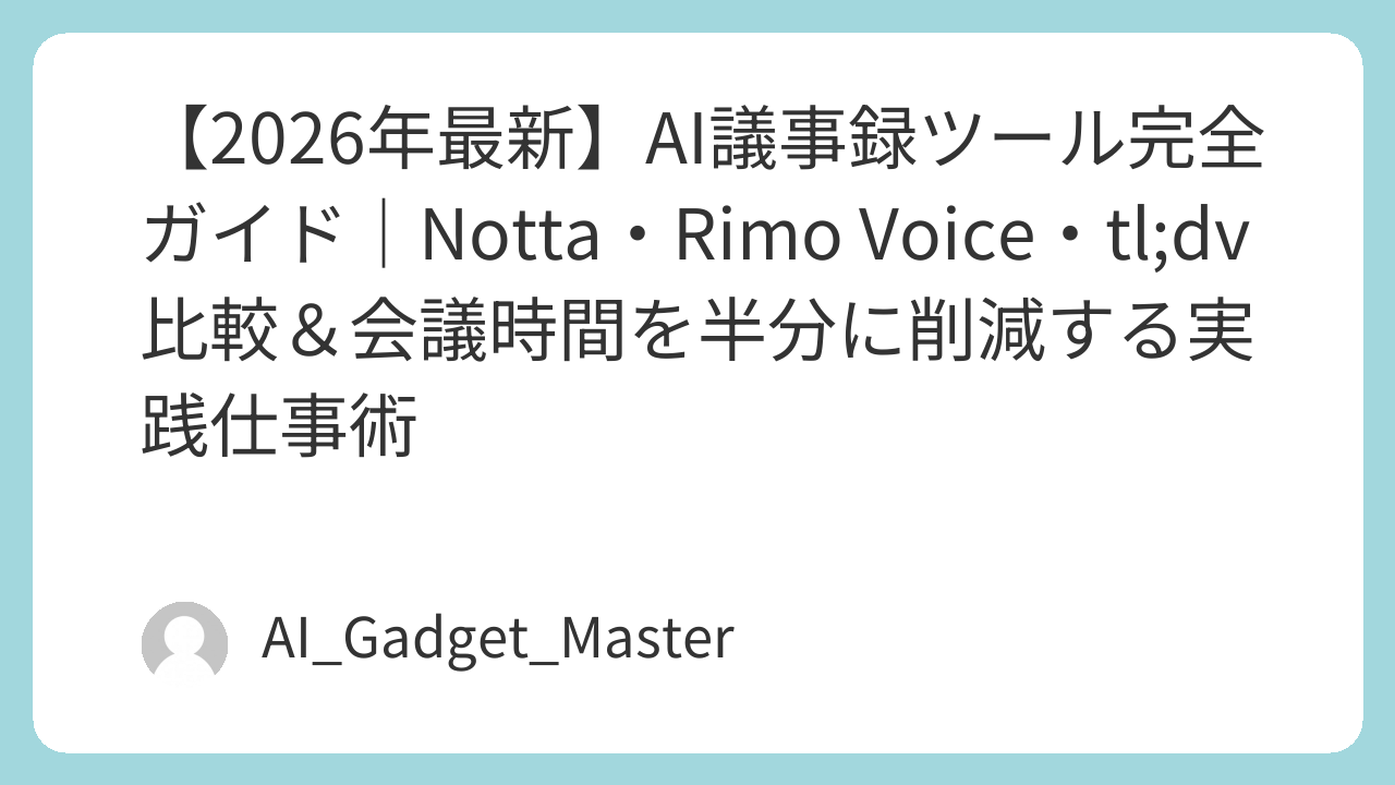 AI議事録ツールは、2026年の仕事術において最もROIが高いツールのひとつです。月額1,500〜3,000円の投資で、週あたり数時間の議事録作業を削減できます。本記事で紹介した3ツールの中では、日本語精度を重視するならRimo Voice、多言語対応を重視するならNotta、営業チームのCRM連携ならtl;dvがおすすめです。まずは無料プランから始め、自分の業務フローに合うツールを見つけてください。